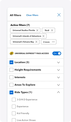We used an e-commerce design pattern for the filters so they aren’t immediately covering the map experience and so that guests can intuitively understand how the map will update in real time.