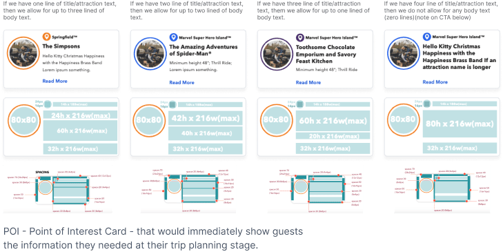I saw an opportunity to strengthen Universal Land’s branding and design communication in the POI cards by matching the stroke around the attraction image and the map pin icon next to the land header to their corresponding pins on the map.