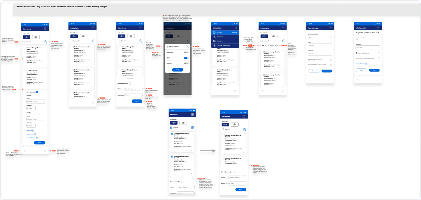 I recommended and then conducted Usability testing with the rides and attractions team managers and employees to identify opportunities and functionality that would make it easier for them to do their jobs well.