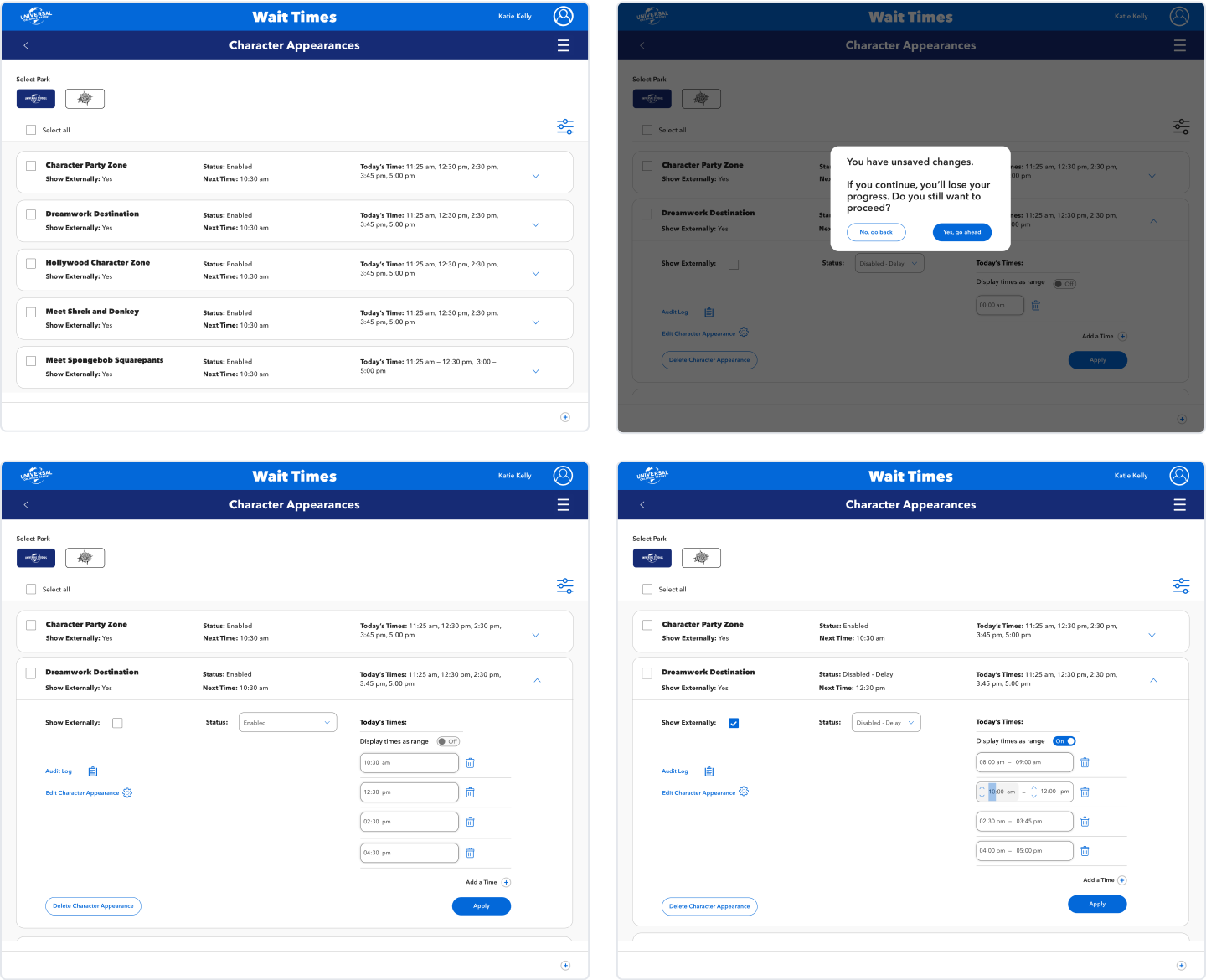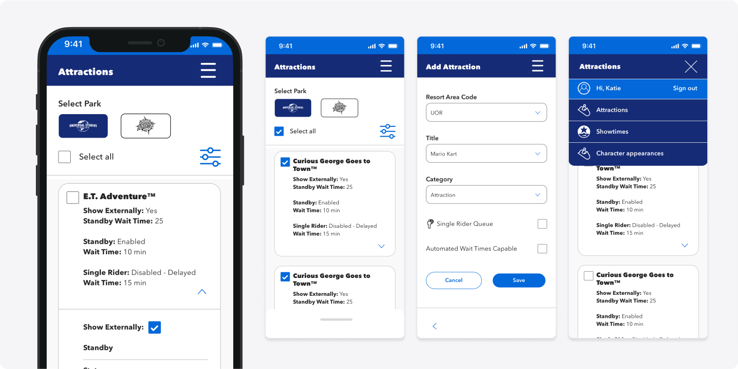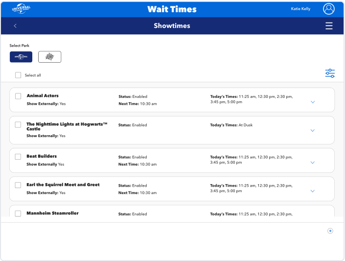 The Universal Studios Theme park Rides and Attractions team was using a legacy app developed n the 90’s to update Park showtimes, ride operation hours, and character appearance times to the guest mobile app.