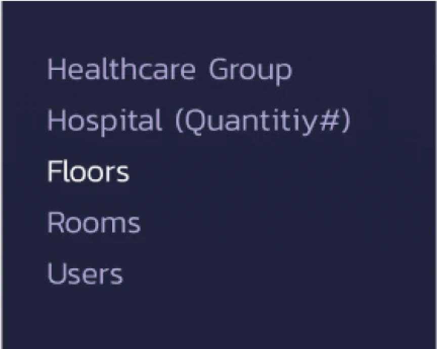 A new hospital cannot be created or edited before it’s parent healthcare group is chosen. A floor cannot be chosen, added, or edited until the user chooses a hospital. The same goes for rooms to floors and patients to rooms.