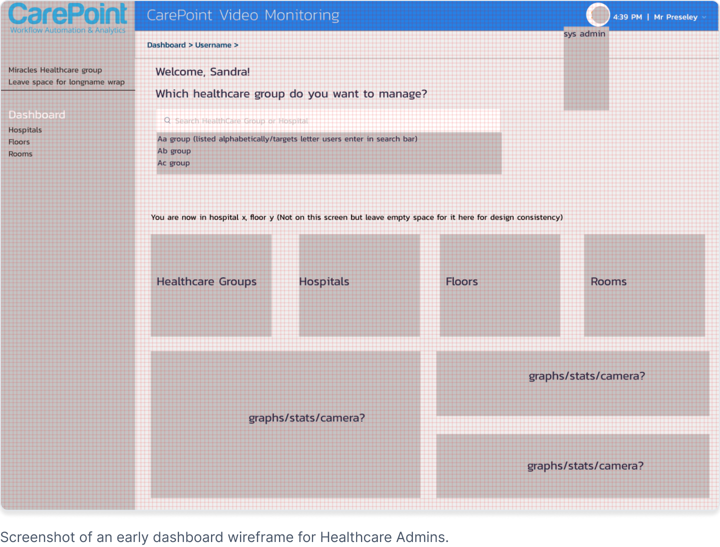 The biggest problem I initially had to solve was presenting the parent-child relationships among healthcare groups/hospitals/floors / rooms, and why this was important to each of our users’ workflows.