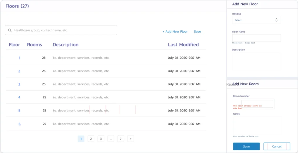 We redesigned CarePoints confusing four-screen flow with multiple error messages and redirects to a one-screen solution for adding and editing hospital floors and rooms.