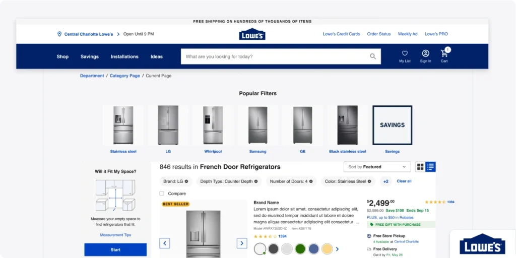 (Based on user testing, customer feedback, and Baymard’s recent audit for Lowes.com)