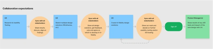 I shared an (🔒 NDA) infographic outlining each step in our UX Process for net-new and incremental design initiatives to offer complete transparency and open conversation to how our process fits in to our cross-functional partners expectations and workflows.