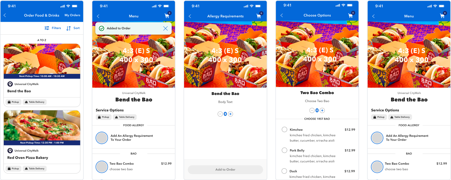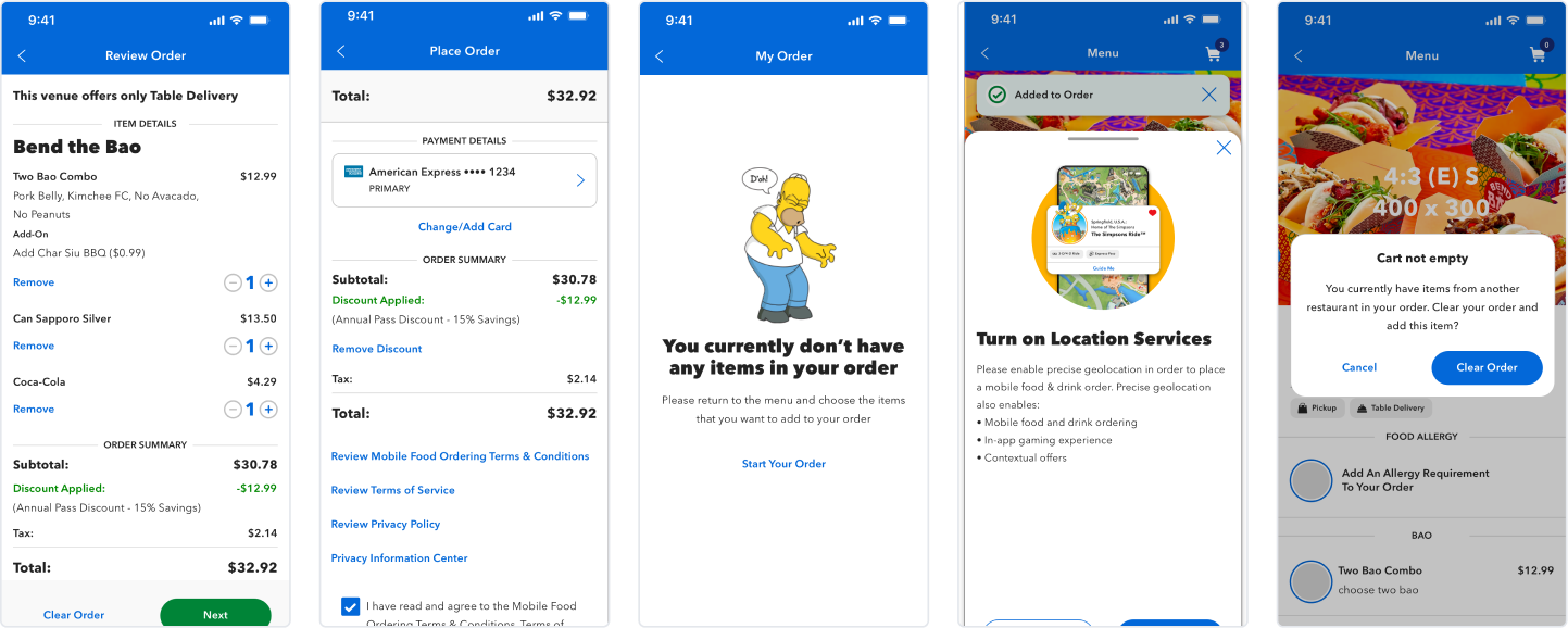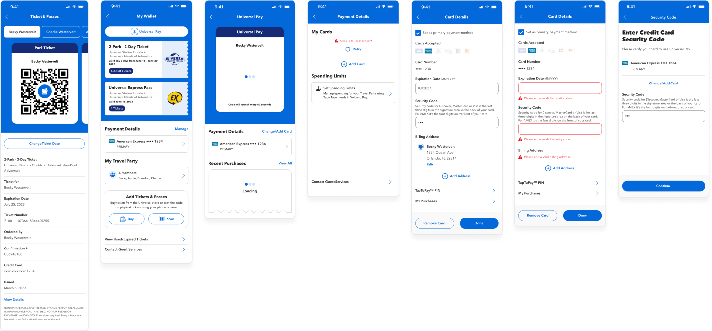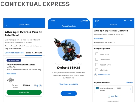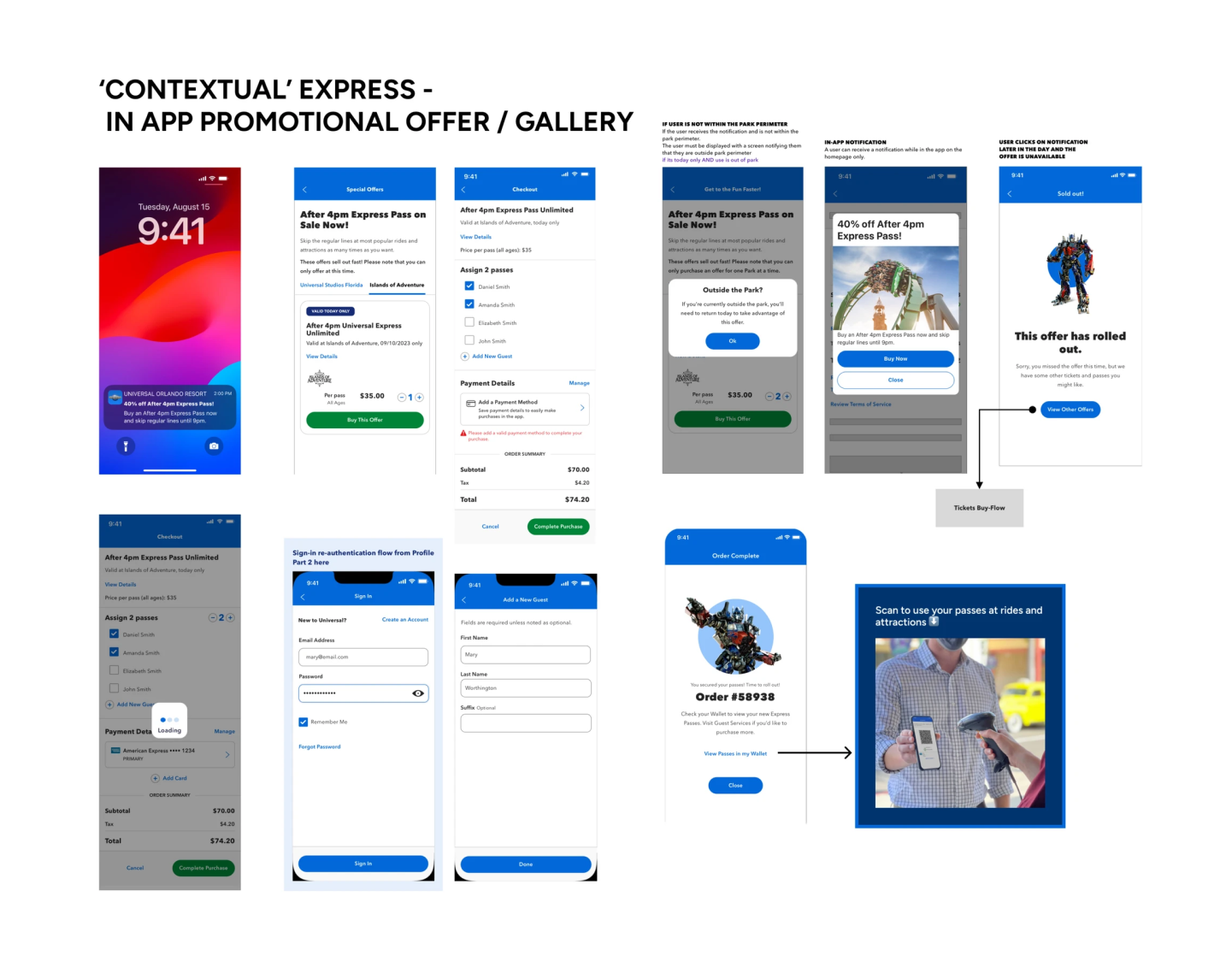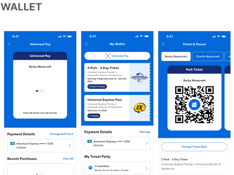 - The features I designed ( Universal Parks Wallet, Mobile Food and Delivery Ordering, and Contextual Express (after 4 pm Express passes) )