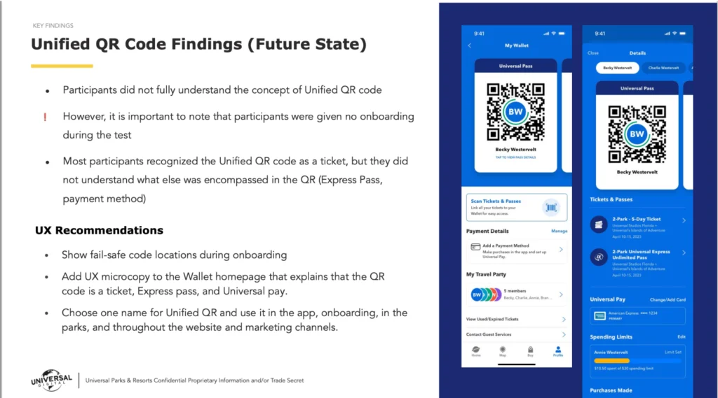 Every designer who onboards for future work will be privy to all past design decisions, usability testing, future UX recommendations, product goals, and planning that has been done for the Universal mobile app.