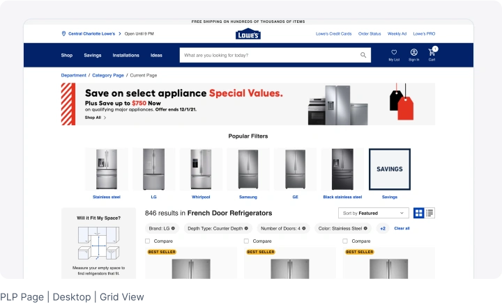 - Page Loading Performance: I also dove into which carousel algorithms are affecting page loading times and performance – as this was an enormous Lowe’s customer pain point, especially on PLP/SLPs.